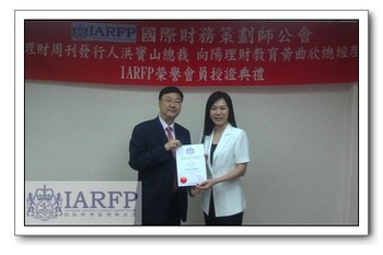 理财周刊洪宝山总裁及向陽理財教育黃曲欣總經理颁赠IARFP荣誉会员仪式